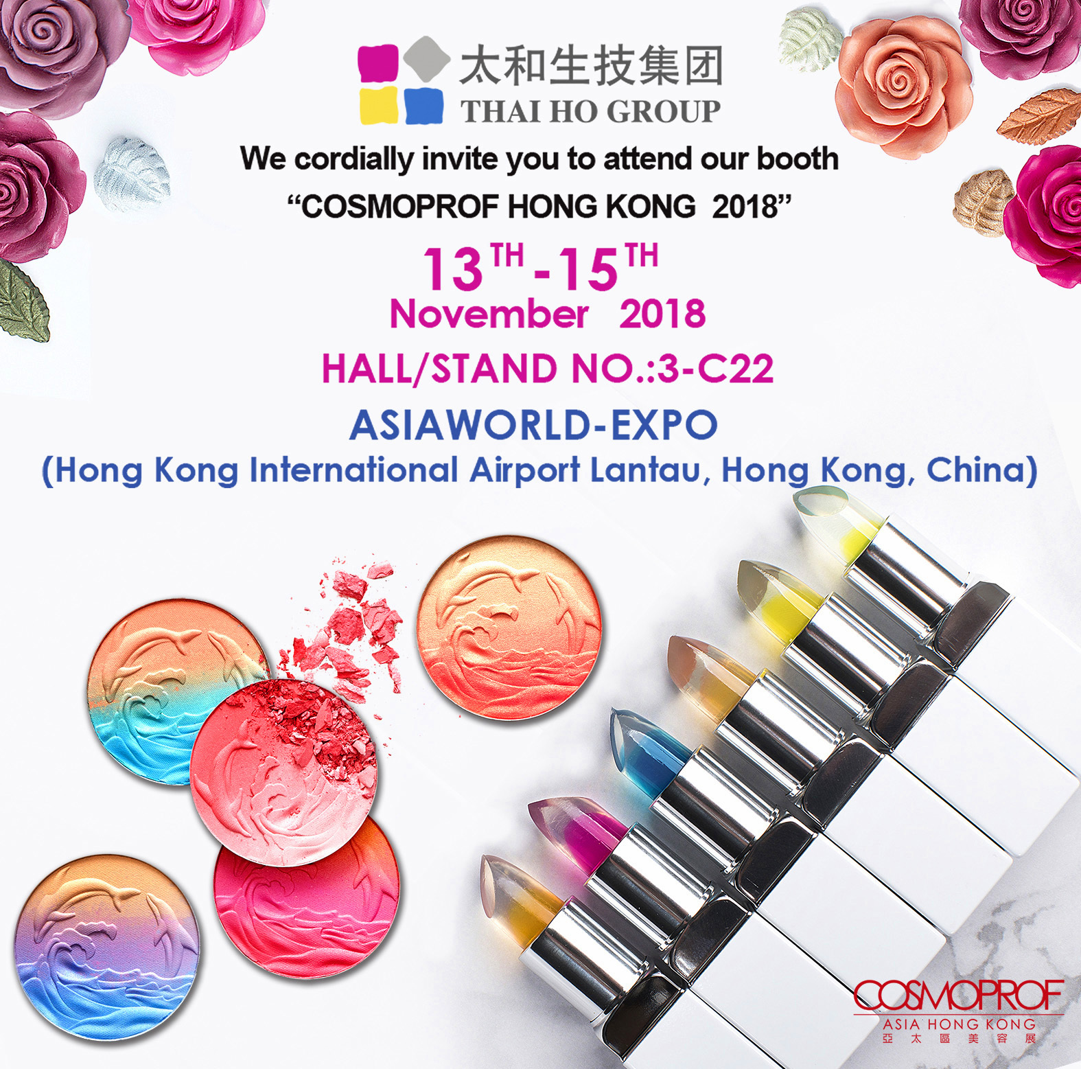 2018年11月13日から三日間、香港で行われるCosmoprof Asiaに出展致します。當(dāng)社はマルチスタイルと未來トレンドをテーマとし、ご來場の方々にこれまでと違った衝撃を與えたいと思っております。これからも情報(bào)を更新する予定でおりますので、當(dāng)社のHPをご覧頂ければと思います。